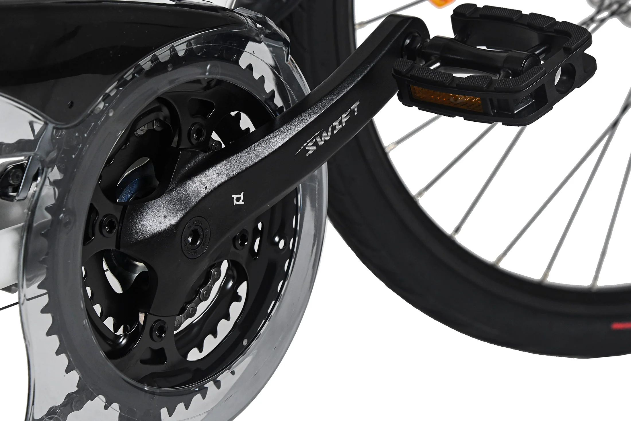 Kurbel: SWIFT Aluminium-Kurbel mit 3 Kettenblättern (Abstufung 28-38-48 Zähne)
