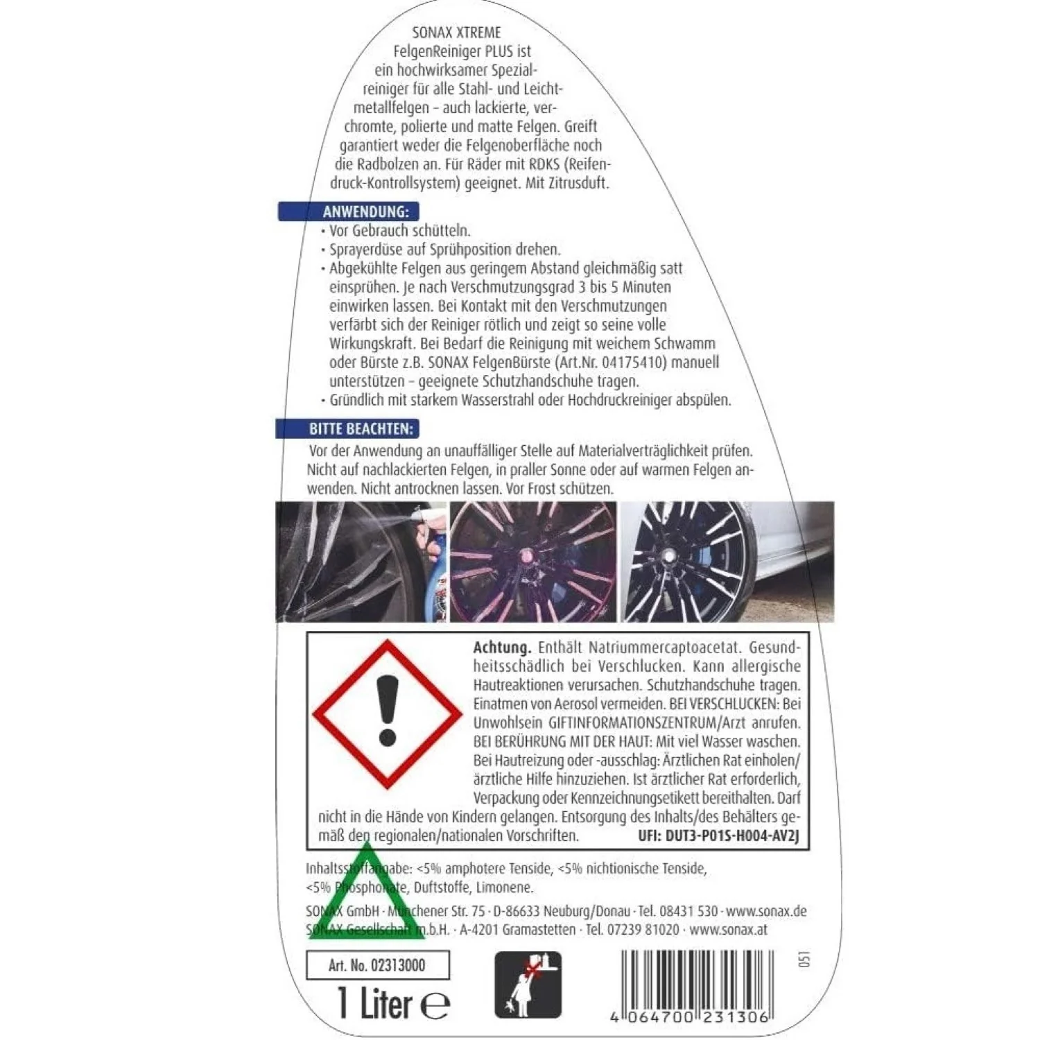 SONAX XTREME FelgenReiniger PLUS ist ein hochwirksamer, sĂ€urefreier Spezialreiniger fĂŒr alle Stahl- und Leichtmetallfelgen auch verchromte und polierte Felgen.